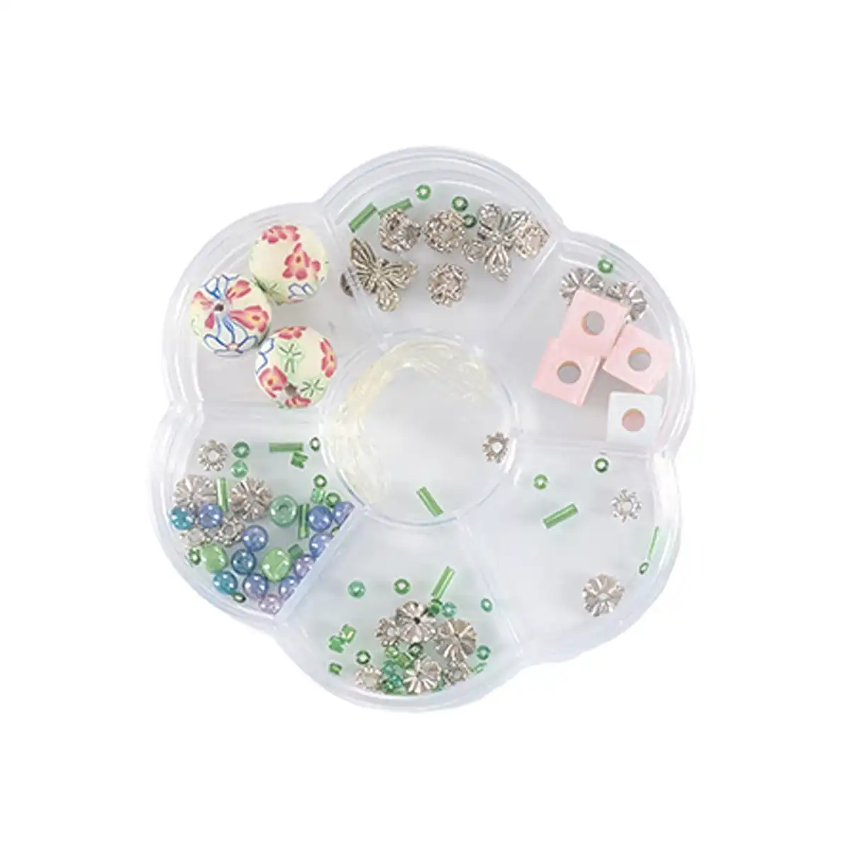 Akryl perleæsken til børn er skabt til kreativ leg, hvor ideer får lov at vokse. Hver æske indeholder akrylperler, metalperler og elastiksnor, så barnet kan lave smukke armbånd og halskæder. Den blomsterformede æske kan bruges igen og igen, og du finder flere kreative produkter i vores kategorier perler og kreative sæt.