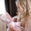 For at gøre Leonora endnu mere personlig, kan du få hendes kjole broderet med barnets navn. Det er en særlig gave, der gør dukken endnu mere unik og giver et ekstra touch af kærlighed.