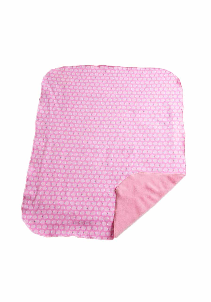 Baby tæppet har lækker blød jersey med pindsvine print på den ene side, og lækker blød fleece på bagsiden.