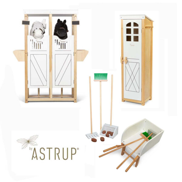 De kære kæpheste skal jo have et godt sted at sove og et sted at tage et lille hvil, når de ikke er ude at rides på, som de jo er det meste af dagen. Derfor har vi lavet denne lækre pakkeløsning fra BY Astrup, for alle heste skal have en stald. -også børnenes legetøjsheste. Og denne elegante hestestald fra By Astrup et must i børneværelset, ligesom staldskabet til alt deres udstyr.