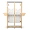 Hestestalden og staldskabet er fremstillet i MDF, tea wood, krydsfiner og fyrretræ.