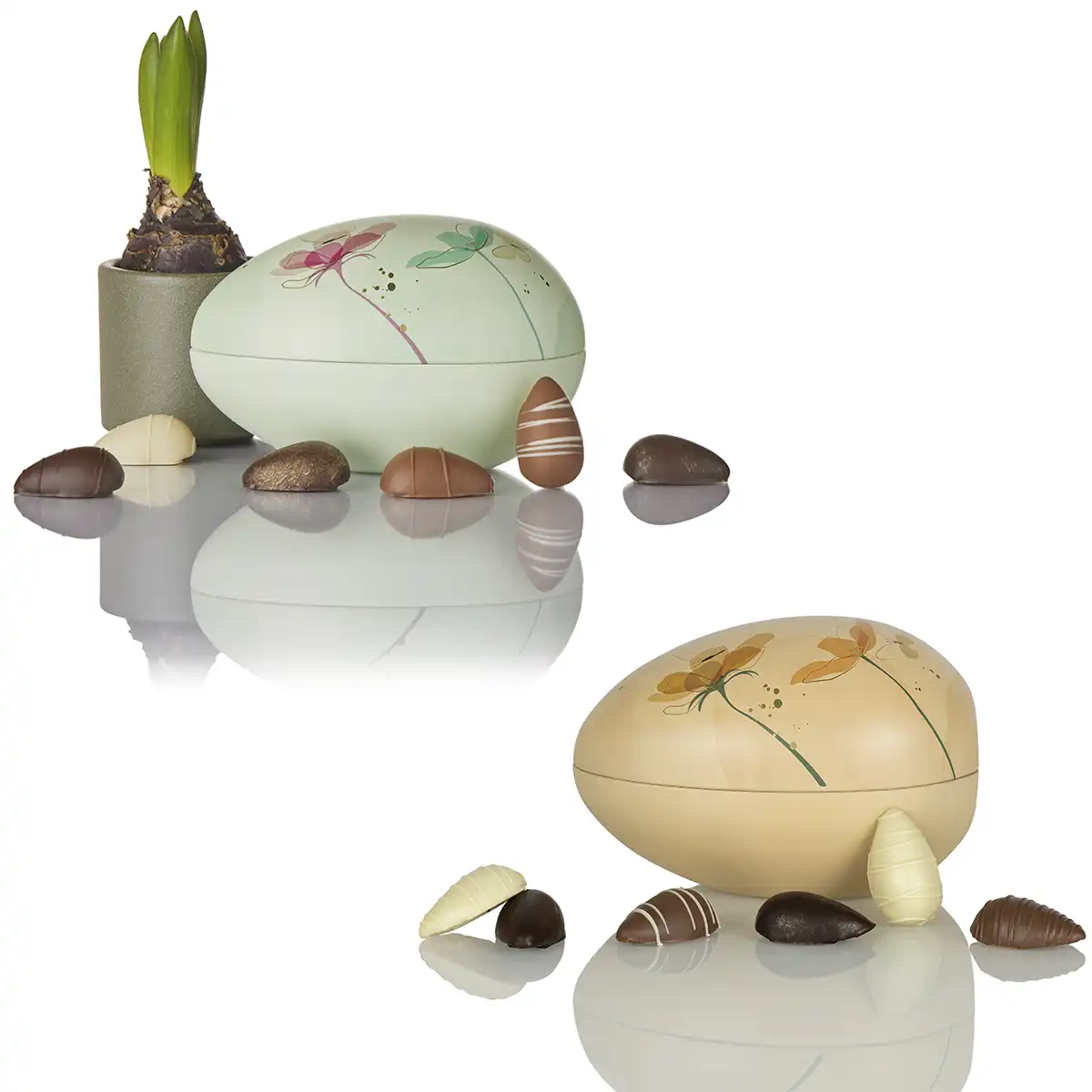 Metal påskeæg med blomster og mix af små marcipan æg fra Cocoture – 130 g mini marcipanæg