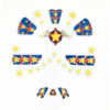 Pakken indeholder et ark med flotte og farverige superhelt ansigtsklistermærker. Klistermærkerne er designet til at skabe et unikt og fantastisk superhelt-look. Du kan nemt kombinere dem med andre udklædningselementer, som en kappe eller en maske, og skabe den ultimative udklædningsoplevelse. Det gør det let og sjovt at blive en superhelt på et øjeblik.