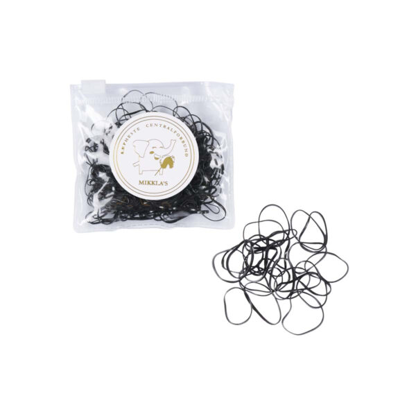 Pakken indeholder ca. 250 små latex elastikker i sort.
