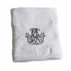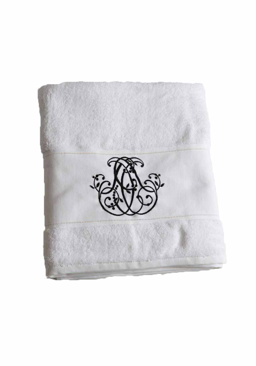 Lækker elegant luksus bade håndklæde i hvid med sort monogram.