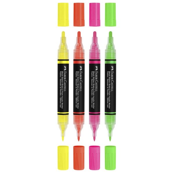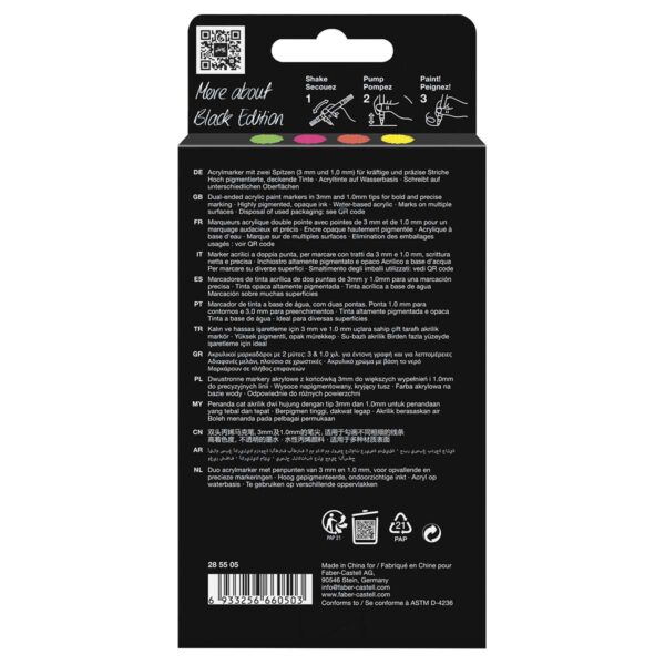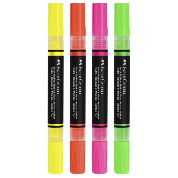 Faber-Castell Black Edition shake & paint akryl tuscher neon 4 stk – Akryltuscher der får farverne til at danse
