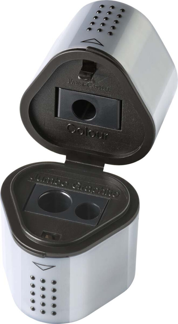 Faber-Castell Blyantspidser trio Grå er et uundværligt redskab i penalhuset af flere årsager. Specielt dem med lukkede rum er nyttige, fordi de holder affaldet inde og gør det nemt at tømme senere. En blyantspidser hjælper med at holde orden i penalhuset, og skaber mulighed for forberedelse til dagens skrive/tegne opgaver. Den er altid skarp og klar til brug. Dette gør det lettere at skrive eller tegne uden besvær ej heller med sløve blyanter. Med en blyantspidser med lukket rum holdes affaldet, såsom spåner og rester af blyantens træ eller grafit, inde i spidseren. Dette forhindrer rod i penalhuset og holder skrivebordet eller tasken ren. Når spidsen er fuld af affald, kan det lukkede rum nemt tømmes ved at åbne spidseren og hælde affaldet ud. Dette gør det nemt og hurtigt at rydde op uden at sprede affaldet overalt.