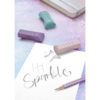 Faber Castell Sparkle jumbo blyanter Ocean er et kvalitetssæt bestående at 3 jumbo sparkle blyanter, et viskelæder og en blyantsspidser. – Alle fra Sparkle serien, med glimmer detaljer og grip, så der er sikret et godt hold om redskaberne. De fine blyanter er med brudsikker stift pga. en speciel limning, hvilket gør at de holder længere og ikke bryder tegne/skrive processen, pga. en knækket stift. Alt i alt et kvalitetssæt som dit barn vil få stor glæde af.