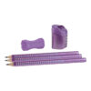 Faber-Castell sparkle jumbo blyanter Violet 3 stk.er ikke blot et almindeligt redskab til at skrive og tegne med, men en kilde til inspiration og læring på samme tid. Den trekantede form og grebet på blyanterne giver barnet et behageligt og stabilt hold på blyanten, hvilket er afgørende for at udvikle deres skrivefærdigheder korrekt fra starten. Denne ergonomiske designfunktion gør det også lettere for børn at kontrollere deres bevægelser og opnå mere præcis og detaljeret stregføring. Udover den praktiske fordel ved en korrekt pen holdning tilbyder disse flotte glimmerblyanter også en ekstra sjov faktor. Deres skinnende og farverige udseende tiltrækker barnets opmærksomhed og vækker deres kreativitet og fantasi, samt lysten til at bruge blyanten