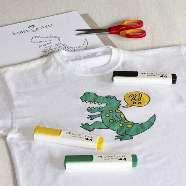 - Design Dit Eget Tøj – Med Faber-Castell tekstiltusser kan børn forvandle almindeligt tøj til personlige mesterværker. T-shirts, jeans og hættetrøjer kan dekoreres med sjove mønstre, deres navne eller yndlingsfigurer. Det er en fantastisk måde for børn at udtrykke deres personlige stil og stolt vise deres egne kreationer frem.