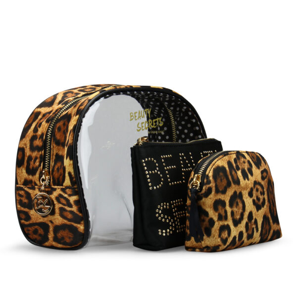 Toilettaske sættet er flot og elegant sort og leopard printet.