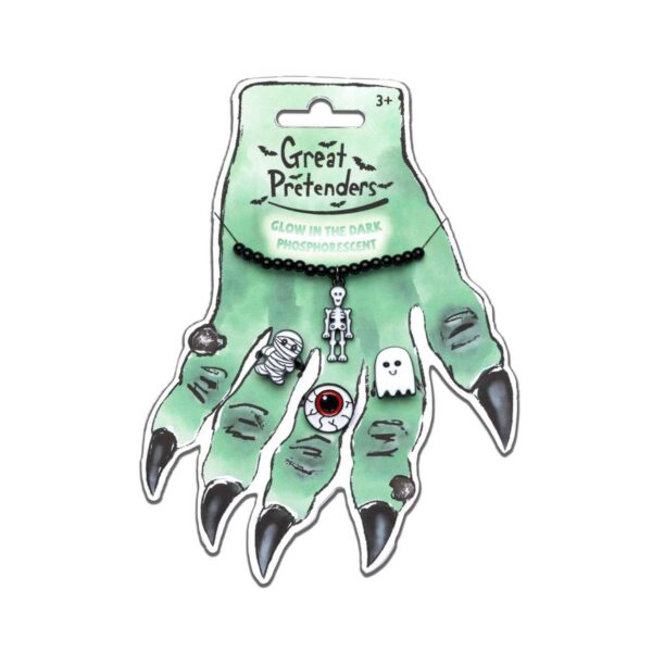 Børnearmbånd og børneringe med selvlysende halloween fra Great Pretenders.