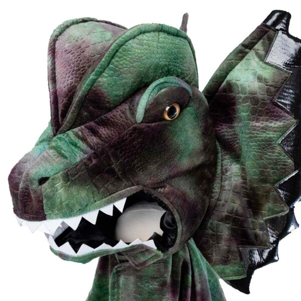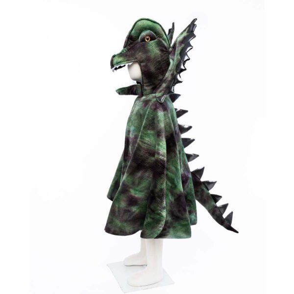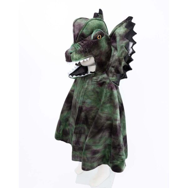 Sejt Grandasaurus Dilophosaurus dragekostume med kappe og klør fra Great Pretenders.