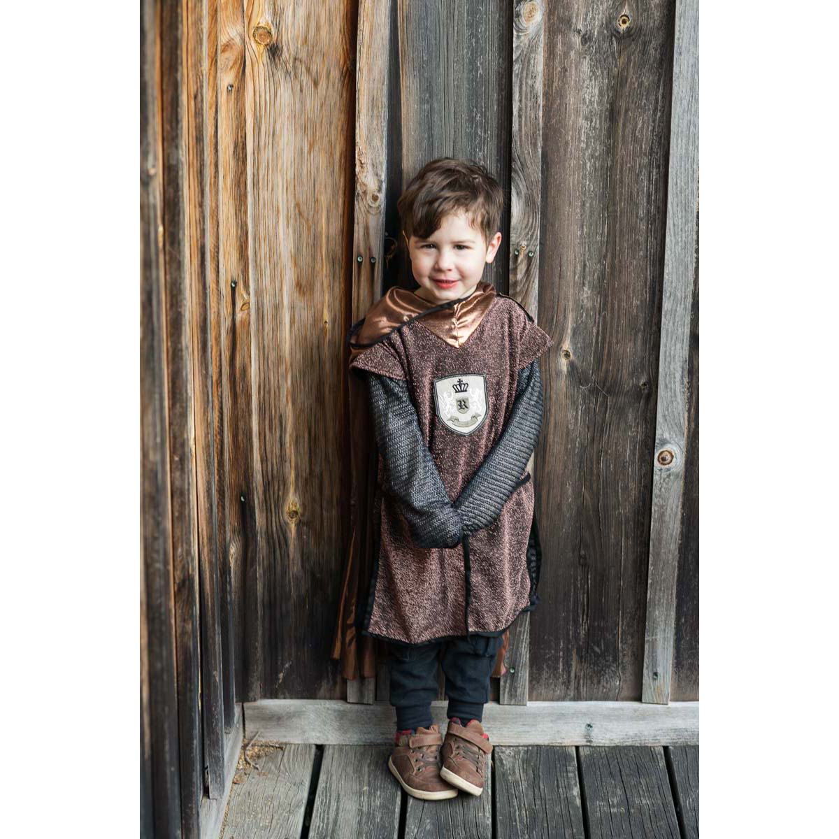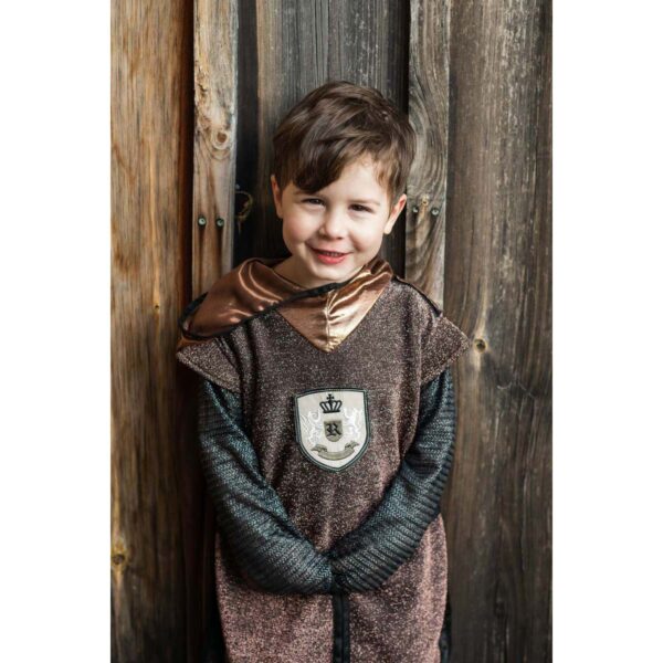 - Riddersættet, med sin flotte kobberfarve, realistiske våbenskjold og jernbrynje, giver barnet en fantastisk udklædningsoplevelse. Det er som at træde ind i en middelalderlig fortælling.