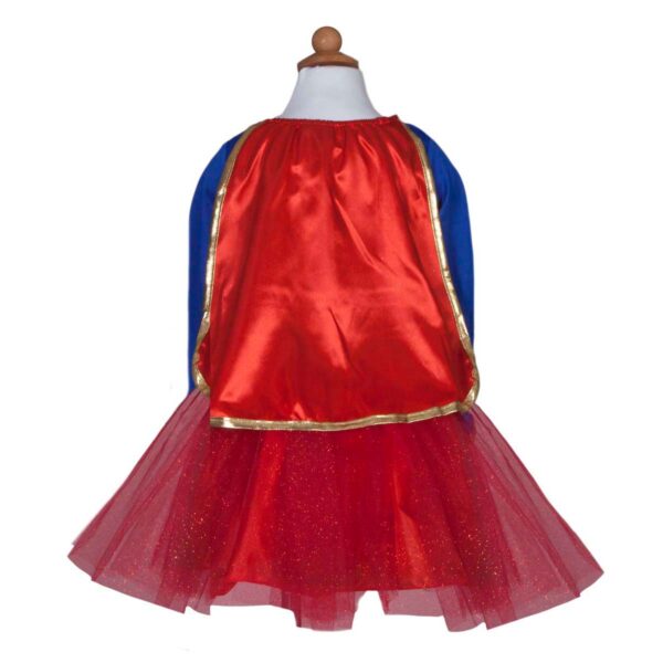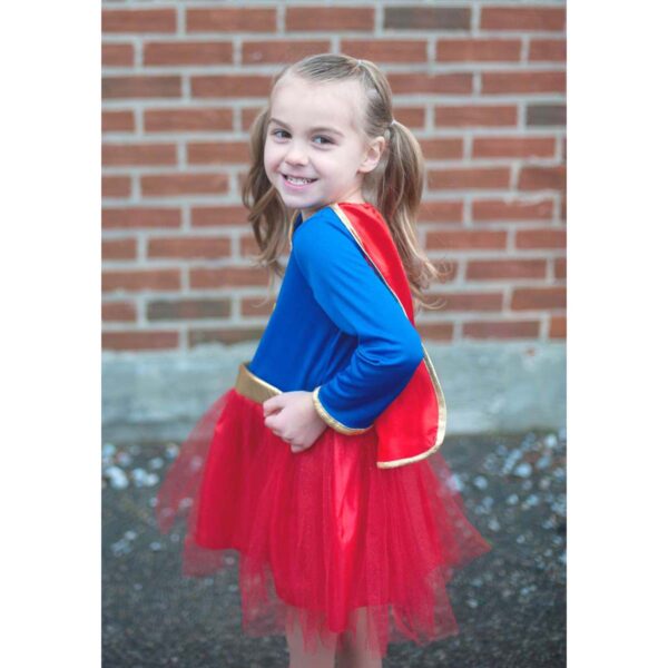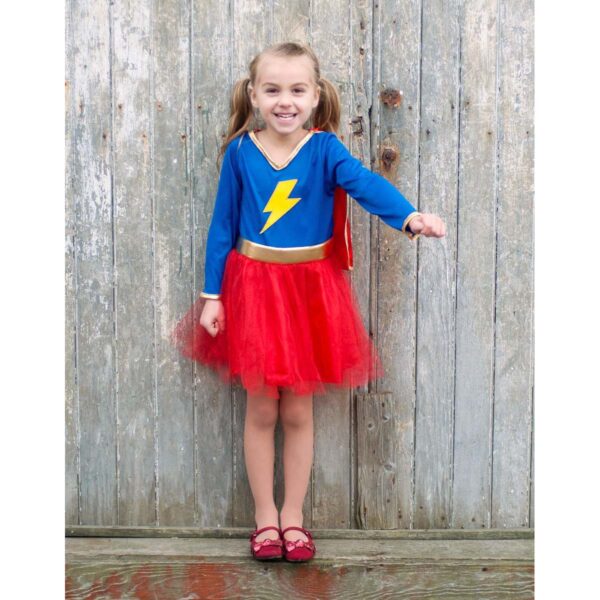 Drømmer din lille superhelt om magiske eventyr og lege, hvor hun er en af byens vigtigste beskyttere? Lad hendes fantasi blomstre med dette fortryllende Superhelt Kostume fra Great Pretenders! Dette sæt med kappe, superhelte briller og skørt er skabt til at bringe glæde og leg ind i dit barns verden og er med til at fremme kreativitet og udvikle sociale færdigheder gennem udklædnings- og rollelege.