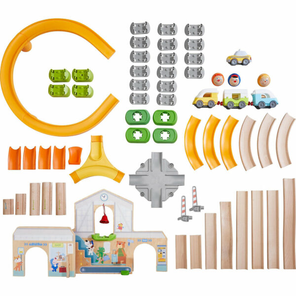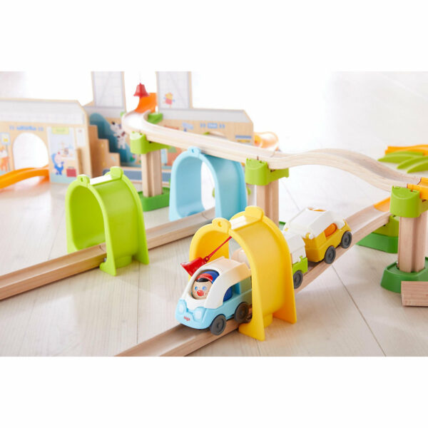 HABA Kullerbü kuglebane Banegård – Skab en spændende og fantasifuld verden af leg med banegården. Denne farverige kuglebane kombinerer sjov kugleræs med klassisk tog og banegård leg, hvor børn kan lade deres kugler tage toget på eventyrlige rejser. Med masser af bevægelige dele og mulighed for at kombinere med andre Kullerbü-kuglebaner, er dette det perfekte valg for små opdagelsesrejsende fra 2 år og op, der elsker kreativ leg og motoriske udfordringer.
