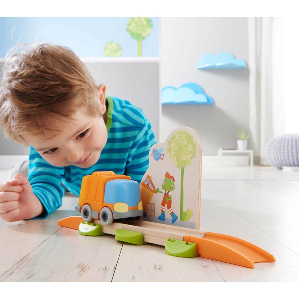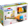 HABA Kullerbü kuglebane tilbehør genbrugsplads – Her kan små miljøhelte tage ansvar og lære om genbrug gennem leg. Med dette sæt kan børnene sortere affald og sende det afsted med kugleskraldebilen på for spændende og lærerige eventyr. Dette tilbehør til Kullerbü kuglebanen tilføjer et nyt lag af kreativitet og giver børn mulighed for at udforske miljøbevidsthed på en sjov måde. Da skraldvognens momentmotor betyder, at den kan køre hurtigt fra hus til hus. Tilføj genbrugspladsen til din kuglebane og skab en verden af leg, læring og ansvarlighed.