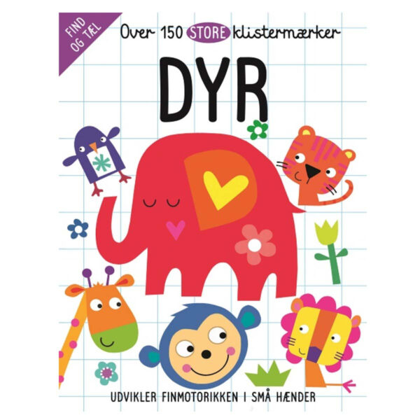 Mappen indeholder farverige sider med søde og sjove motiver af blomster og dyr i jungle samt over 150 store klistermærker.Billederne i mappen angiver, hvor barnet skal sætte de store klistermærker. Der er nemme tælleopgaver på alle sider og tilhørende klistermærker.Udvikler finmotorikken i små hænder og barnet indbydes til at se ligheder og tælle, og samtidig styrkes dets visuelle tænkning og finmotorik.
