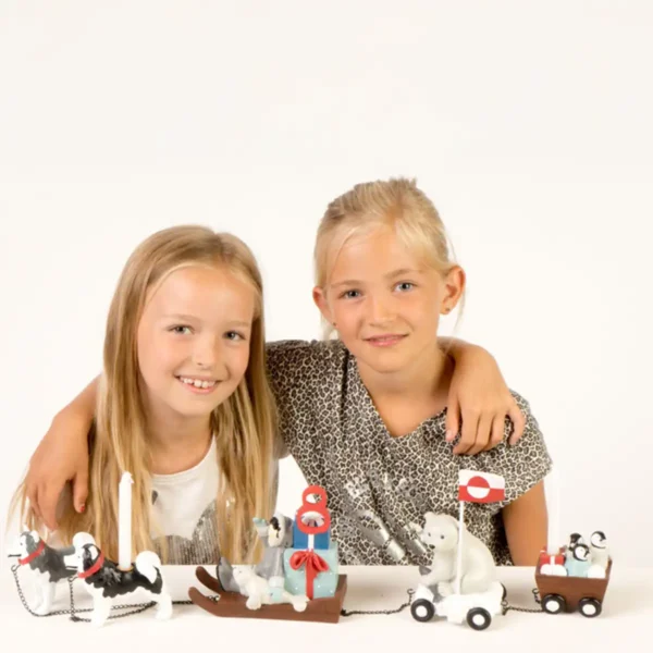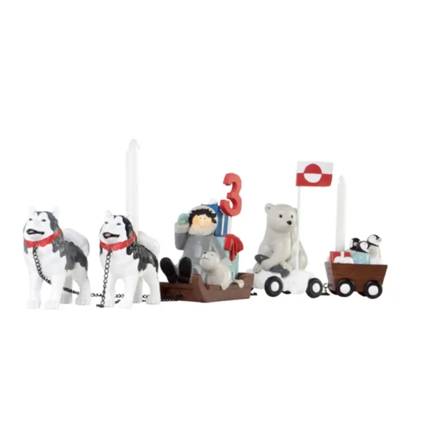 Toget består af en sød figur i slæde og flere vogne, hvor nogle er med hunde. Det hele er lavet i solid polyresin, som kan holde til mange år på fødselsdagsbordet. Der følger tal med fra 0 til 9 samt ét lys, så du nemt kan justere alderen år for år. Det er nemt at samle og placere, og du kan selv bestemme rækkefølgen på figurerne.