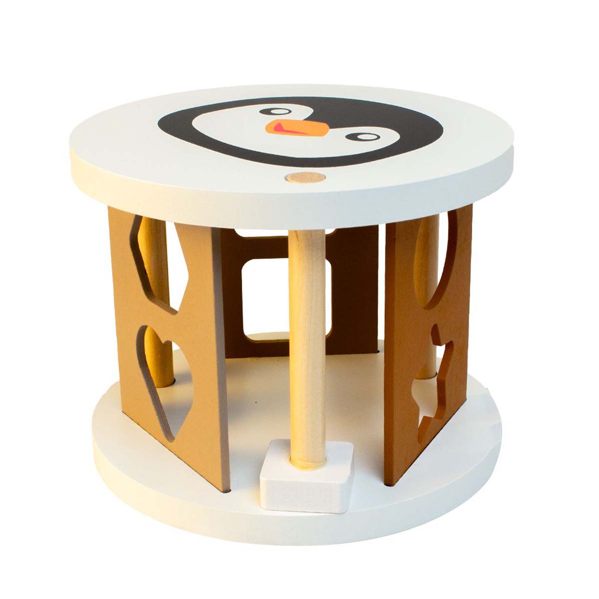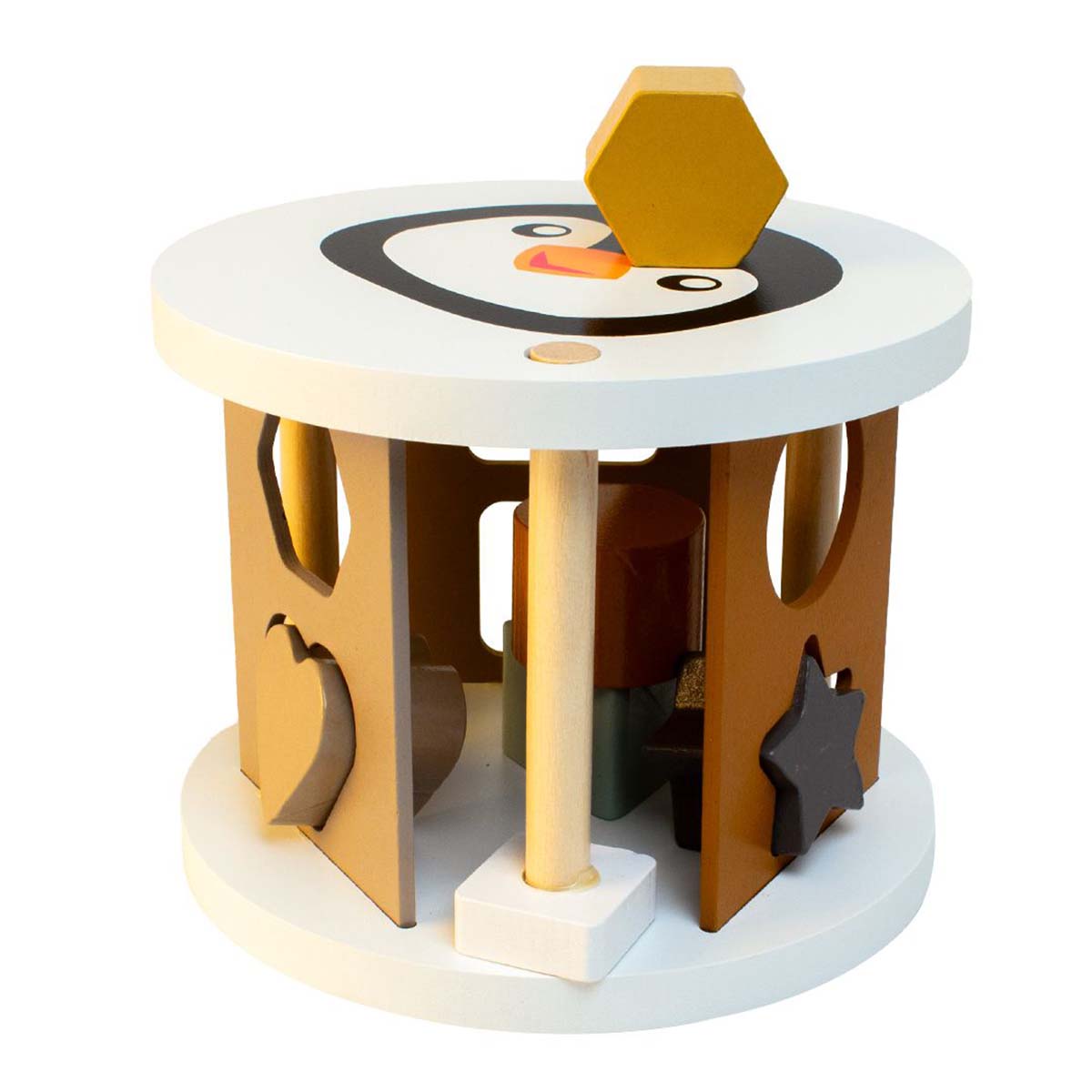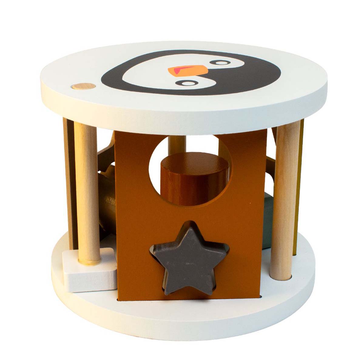 Magni puttekasse pingvin naturfarver er et play-to-learn legetøj, som lærer børn i en tidlig alder om former, farver, genkendelighed og størrelse og hvad jeres leg ellers kunne udvikle sig til. Der er i hvert fald lagt op til lærerig leg i en tidlig alder med dette legetøj.