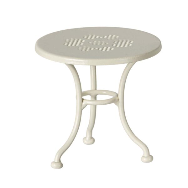 Cafésættet er lavet i metal og passer perfekt til mus i storesøster-/storebror- og lillebror-/lillesøster-størrelse. Bordet og de to siddepladser giver mulighed for små møder, gæstebud eller et hurtigt hvil med en snack. Sættet kan kombineres med Mailegs små kager, flasker og tallerkener – og det passer godt ind både inde og ude i barnets dukkehusverden.
