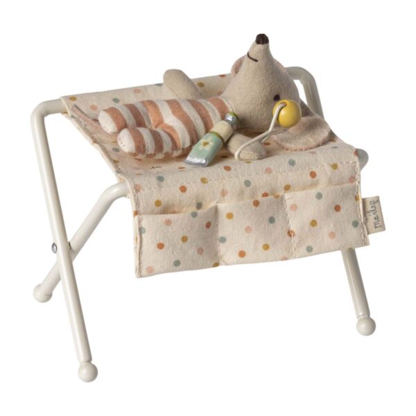 Maileg Dukkehus tilbehør Puslebord til baby mus – Maileg’s søde baby mus som trænger til at blive puslet er dette fine puslebord en nødvendighed.