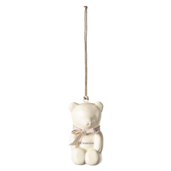 Teddy Bear kan graveres med op til 3 linjer tekst á 10 tegn. Det giver mulighed for at tilføje barnets navn, fødselsdato eller en lille besked, som gør ophænget unikt og personligt. En oplagt gave til dåb, babyshower eller som en kærlig hilsen til en nyfødt.