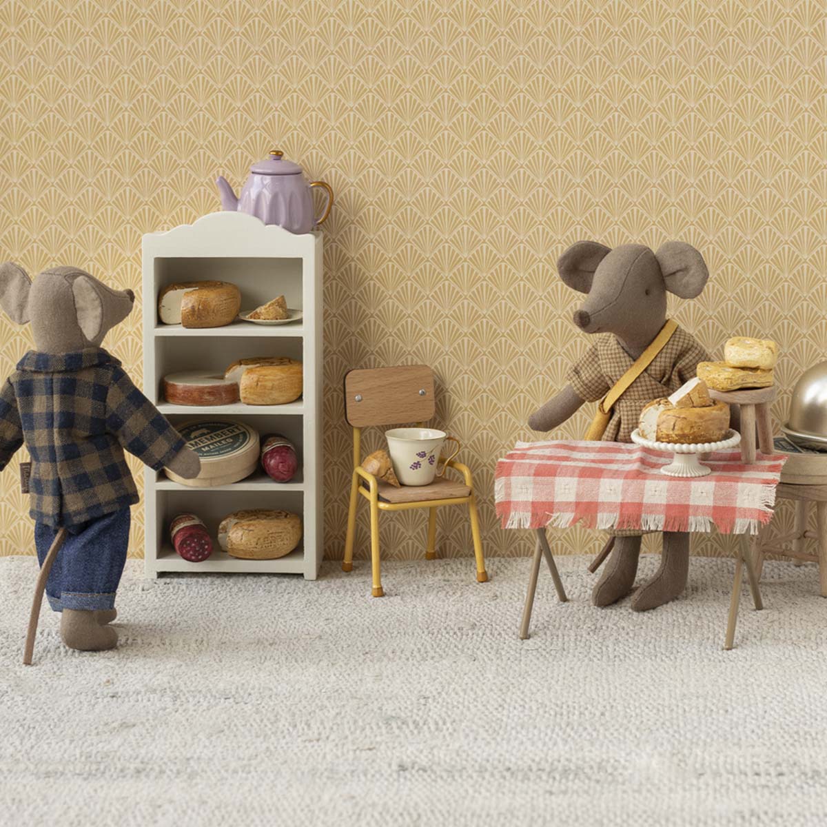 Mor Mus fra Maileg er ikke bare sød, hun er også praktisk. Hun er iført striktrøje og bukser og klar til dagens gøremål. Farverne er lyse og bløde, og musen har det rareste udtryk. Hun passer ind i både børns leg og på hylden som pynt. Musen er lavet i micro-størrelse og er let at tage med