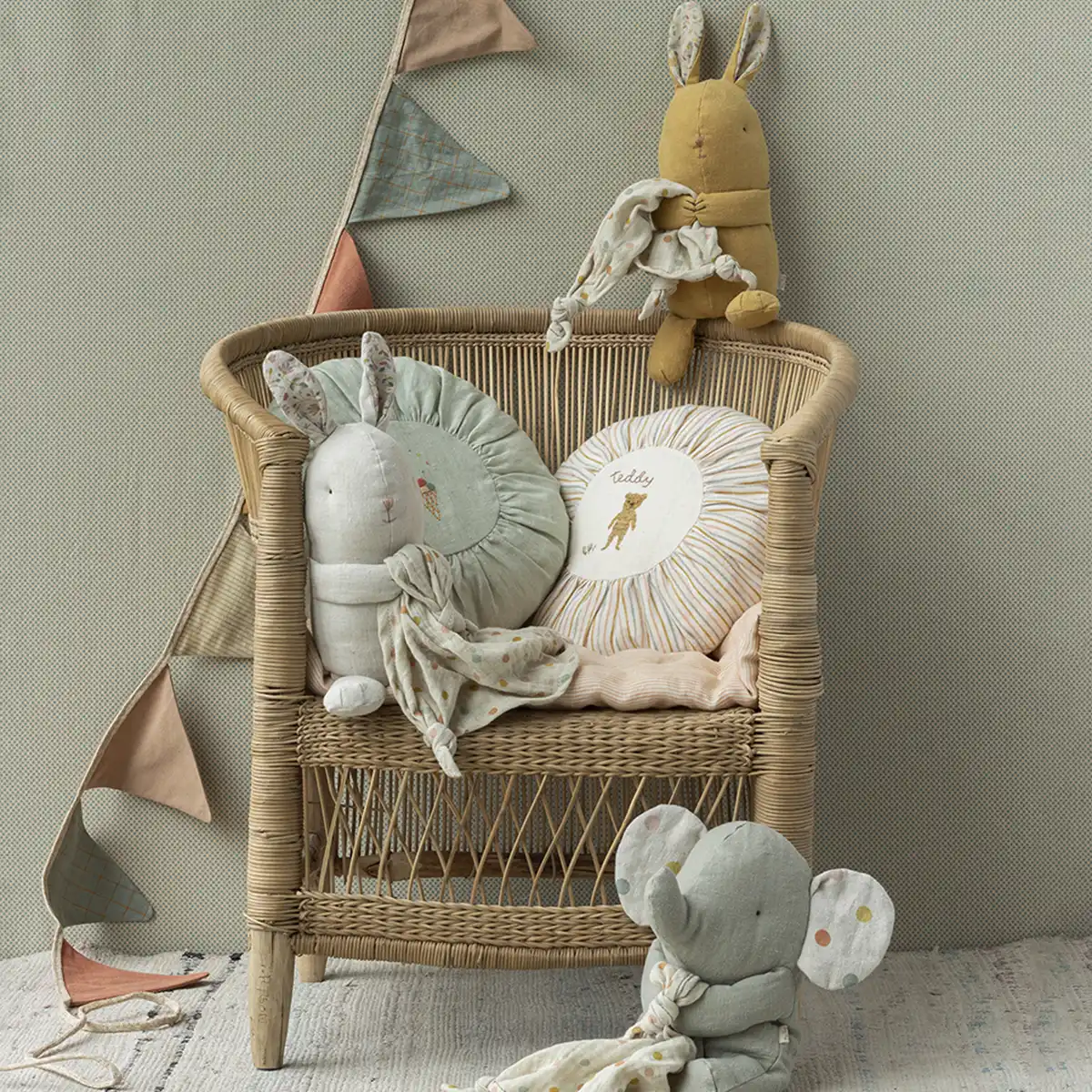 Maileg er et dansk brand skabt af designeren Dorthe Mailil. Hun har formået at kombinere nordisk enkelthed med et eventyrligt udtryk, der vækker både børns og voksnes fantasi. Mailegs univers er fyldt med mus, kaniner, bamser og miniaturetilbehør til dukkehuse, alt sammen skabt med små detaljer, der gør legen levende. Deres produkter handler ikke kun om leg, men om at skabe minder og fortællinger, der kan deles på tværs af generationer. Hos Mikkla finder du et stort udvalg af Maileg bamser, nusseklude og sødt babylegetøj, så du nemt kan bygge et magisk univers til barnet.