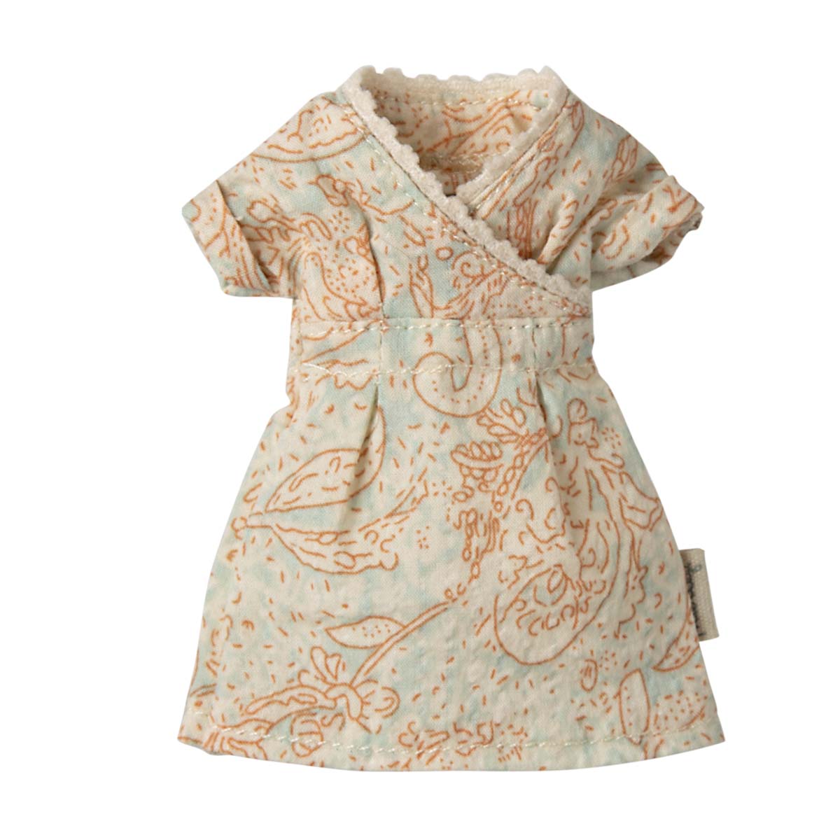 Tøjet til Maileg mus gør legen mere levende. Når børn klæder Mor mus på i den her kjole, opstår der nye historier. Måske skal hun i byen, til fest eller bare hygge hjemme med familien. Kjolen åbner for fantasi og fortælling. Den er nem at tage af og på, og det gør legen tilgængelig for børn i alle aldre. Den er lavet i slidstærke materialer, så den holder til daglig leg i dukkehuset.