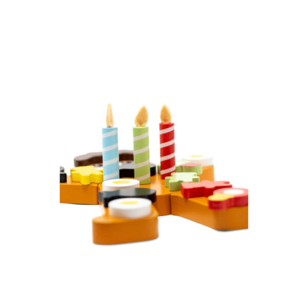- Genkendelighed fra hverdagen – Fødselsdagskagen ligner det, børn kender fra virkelige fødselsdage, hvilket gør legen ekstra sjov og autentisk.