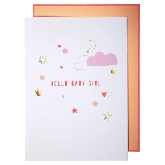 Hello Baby Girl – Dette fine baby kort med guirlande er en sød måde at fejre den nye babys ankomst.