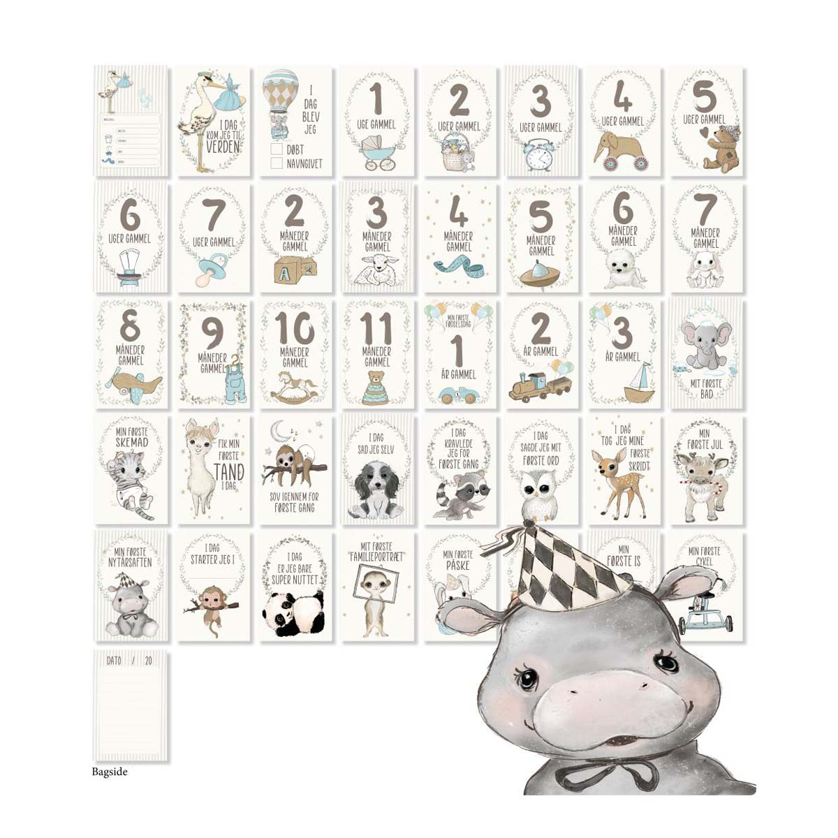 Disse smukke milepælskort hjælper dig med at fange de vigtigste øjeblikke i dit barns opvækst. Skriv datoen, tag et billede af babyen med kortet og skab et evigt minde.