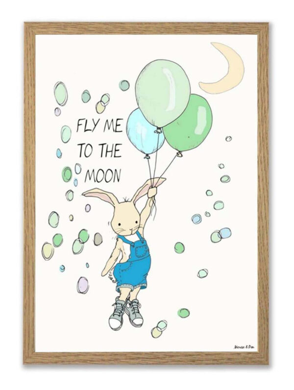 Køb denne flotte Mouse & Pen plakat i A4 str. med teksten “FLY ME TO THE MOON” til drengeværelset.