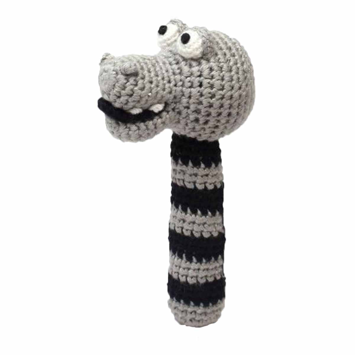 Krokodille rangle i grå fra NatureZoo – Hæklet rangle sjov og udviklende læring til små børn