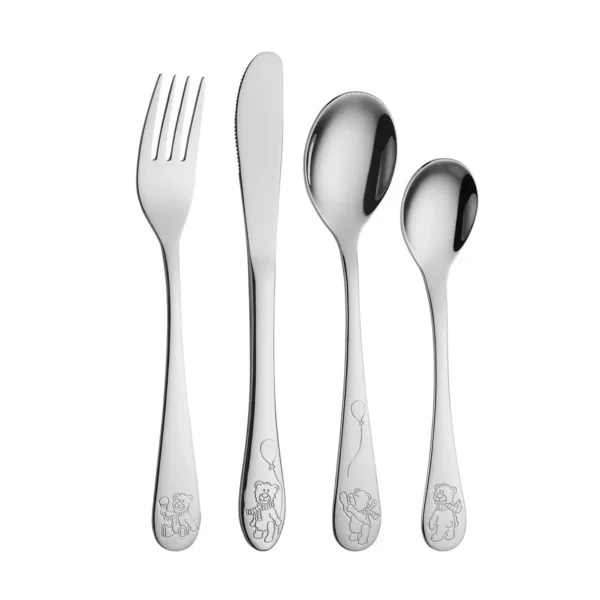- Bjørnemotivet er graveret i et enkelt og roligt design, der giver bestikket et klassisk og børnevenligt udtryk.