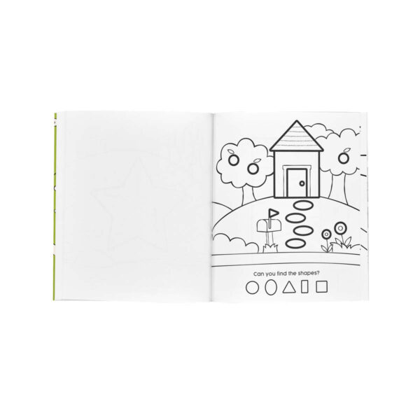 Malebogen indeholder 31 sider, og måler 24,5 x 21,5 cm