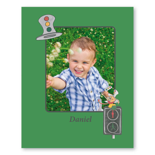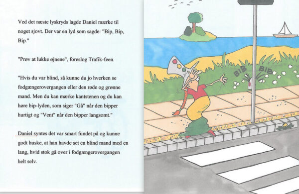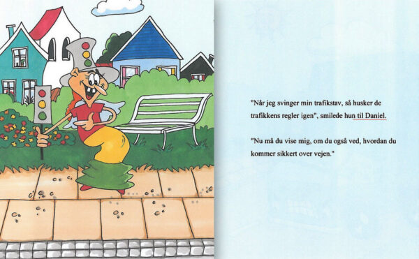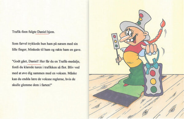 Barnets personlige bog, hvor barnet er på tur gennem hjembyen. Barnet er sammen den lærerige Trafik-fe. På deres vej snakker de om det at færdes sikkert i trafikken. De stopper op ved kantstenen, går over fodgængerfeltet, holder tilbage for den hylende ambulance og hjælper en uheldig cyklist.