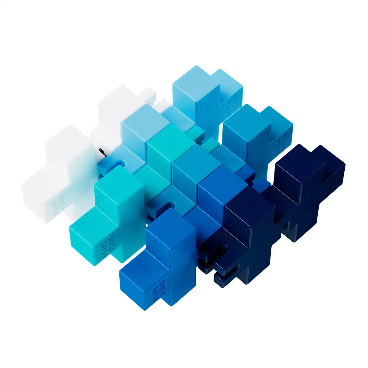 Plus-Plus brikkerne er fremstillet i hård plast og uden giftige kemikalier, de er fleksible i facon, og kan sættes sammen på flere forskellige måder.