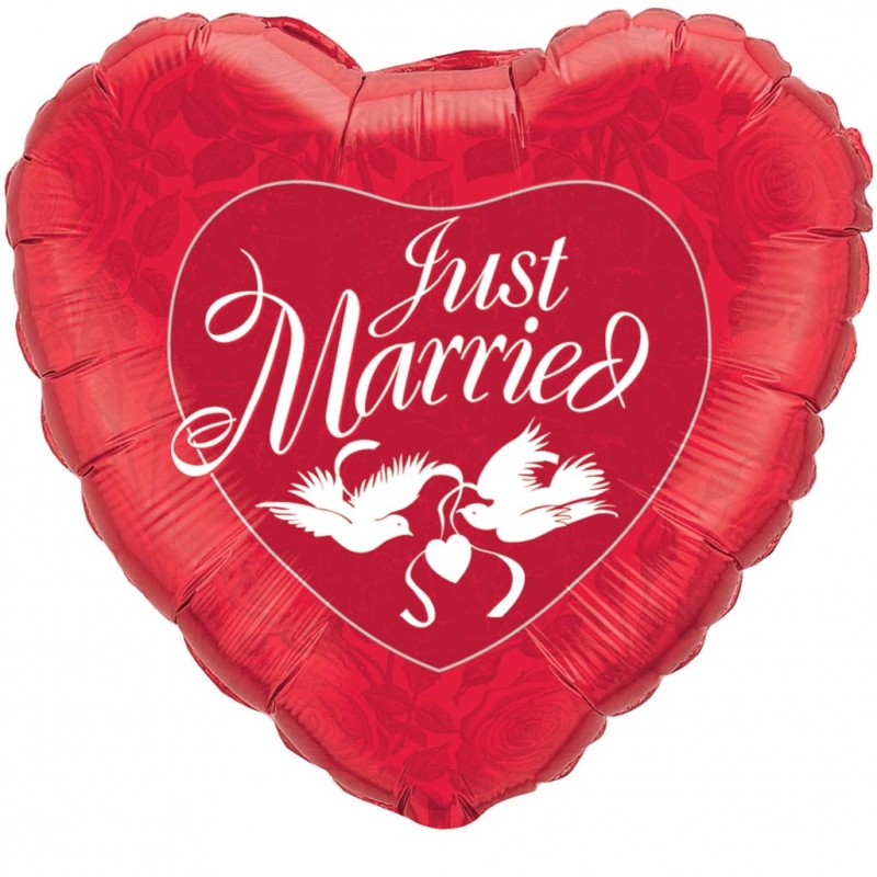 Folieballon med Just Married og turtelduer – stor og iøjnefaldende pynt