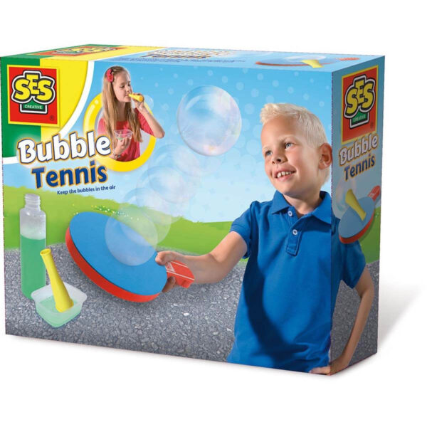 Pust sæbe bobler, og spil tennis med den vha. det medfølgende bat. Sjov aktivitet og hygge med kammerater til mange timers leg i det fri.