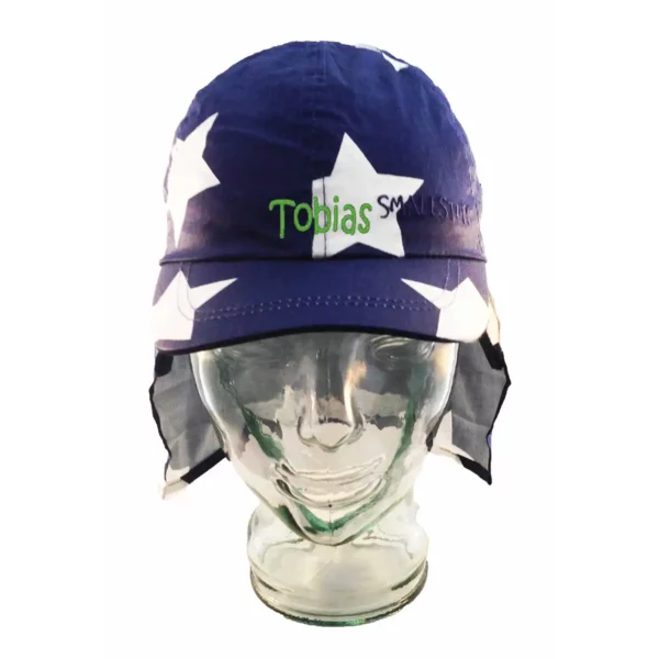 Børne kasket legionærhat str. 54 navy med hvide stjerner fra Smallstuff som beskytter barnets hoved mod solen.