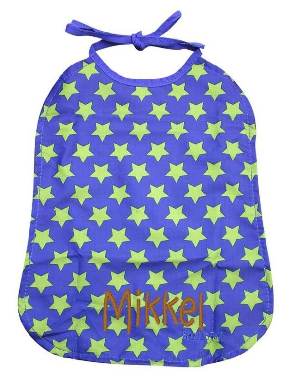 Hagesmækken kan bestilles med broderet navn, se vores store udvalg i tråd farver og skrifttyper.
