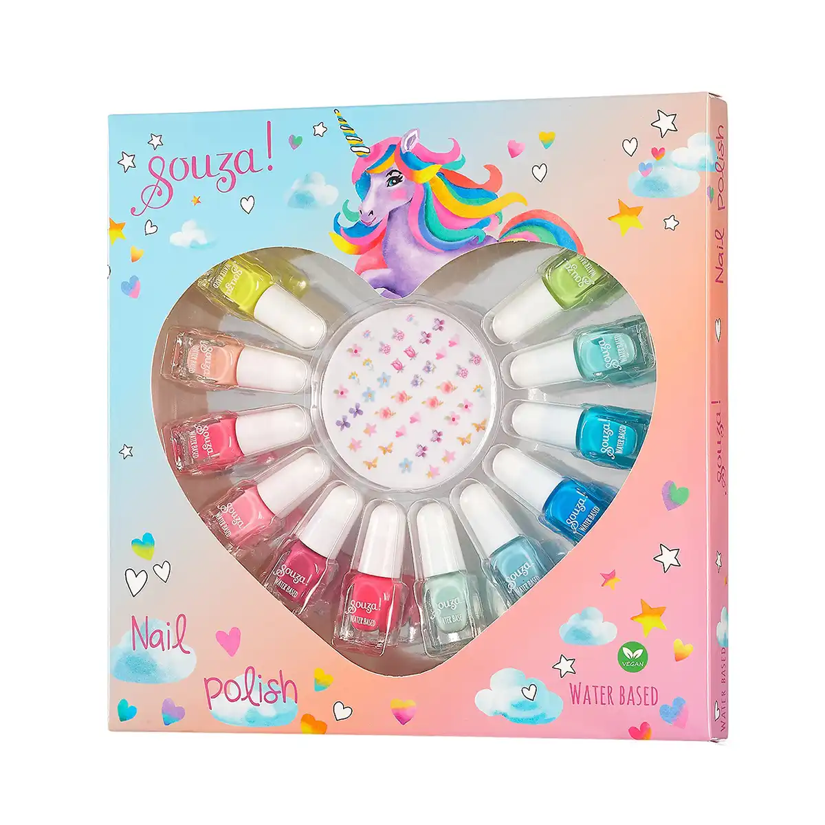 Børne neglelak 12 stk. og negle stickers fra Souza – vandbaseret neglelak til kreativ leg