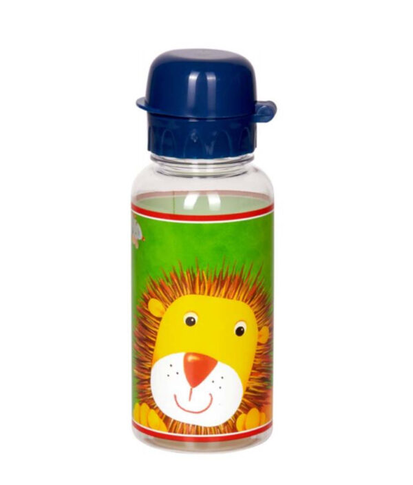 Smart drikkedunk i transparent blå fra Spiegelburg. Drikkedunken har motiv af en løve og en lille mus.