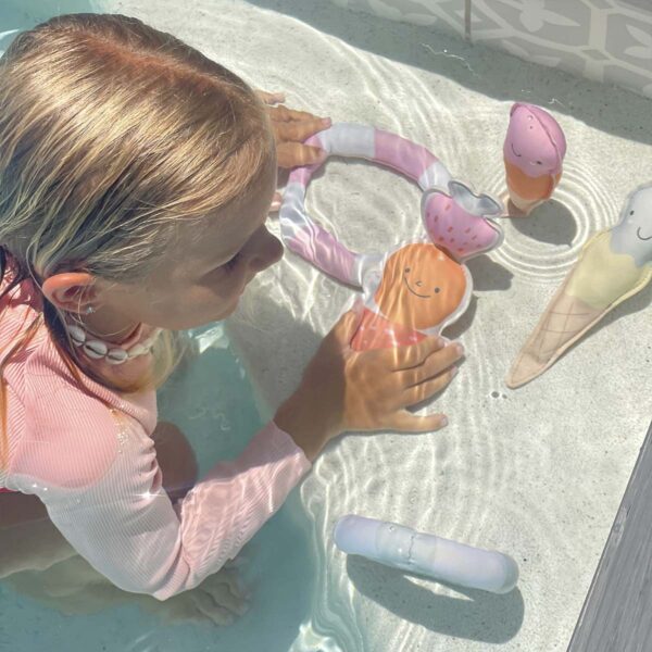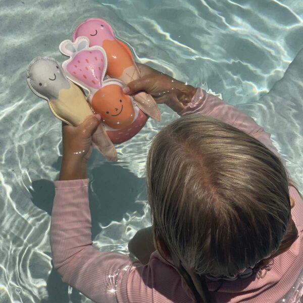 - Styrker selvtilliden i vandet – At dykke efter og hente Dive Buddies Cotton Candy fra bunden af poolen eller havet gør det sjovt at lære at svømme. Det hjælper dit barn med at føle sig trygt og selvsikkert i vandet.