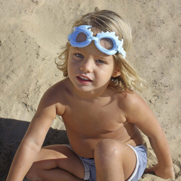 - Svømmebrillerne beskytter børnenes øjne mod solens skadelige stråler, hvilket er vigtigt både i og uden for vandet.