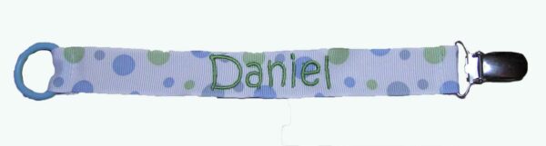 Suttesnoren kan også bestilles med broderet navn, vælg mellem mange forskellige trådfarver og skrifttyper.