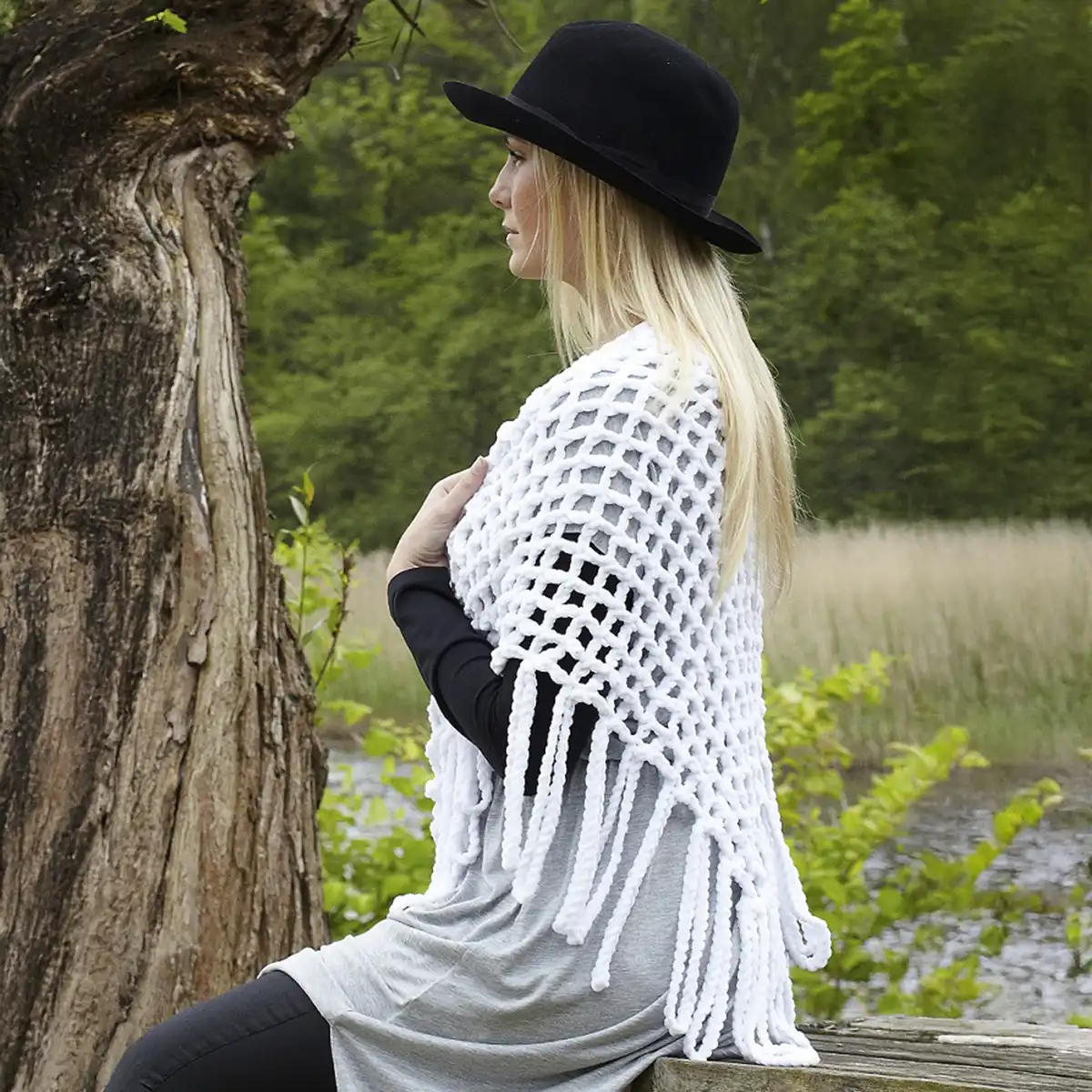 Hækleopskrift lækkert sjal fra Svarta Fåret – Et sjal der luner og klæder