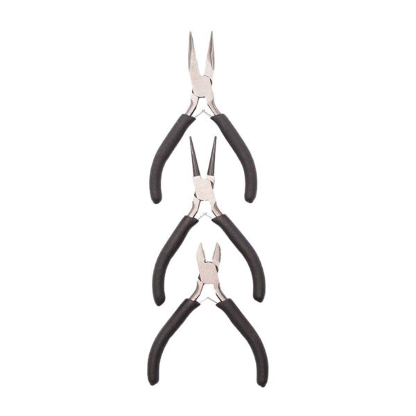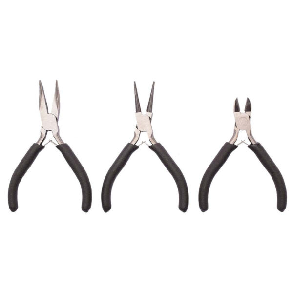 Tangsæt til smykkefremstilling i jern, næsetang, bidtang og fladrundtang